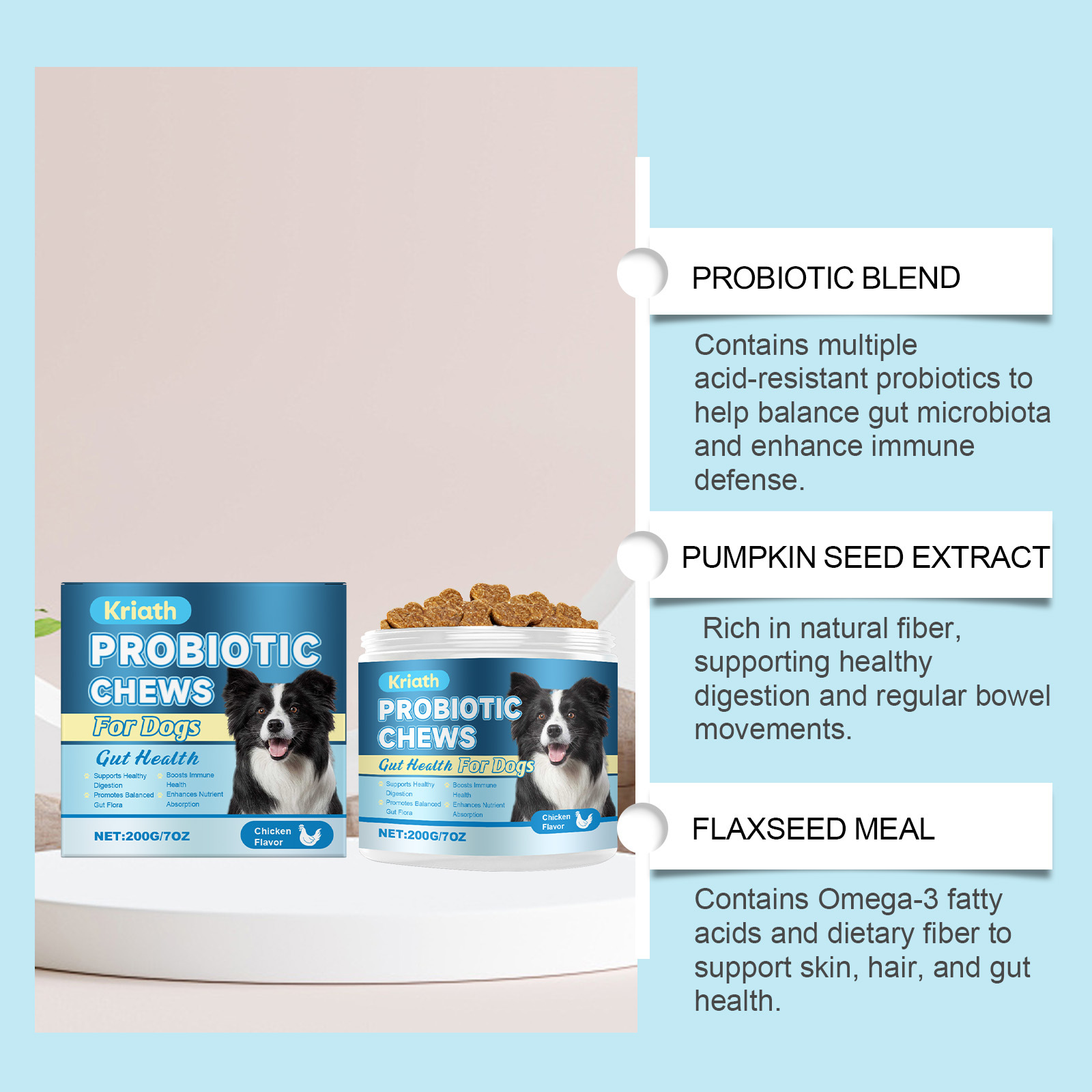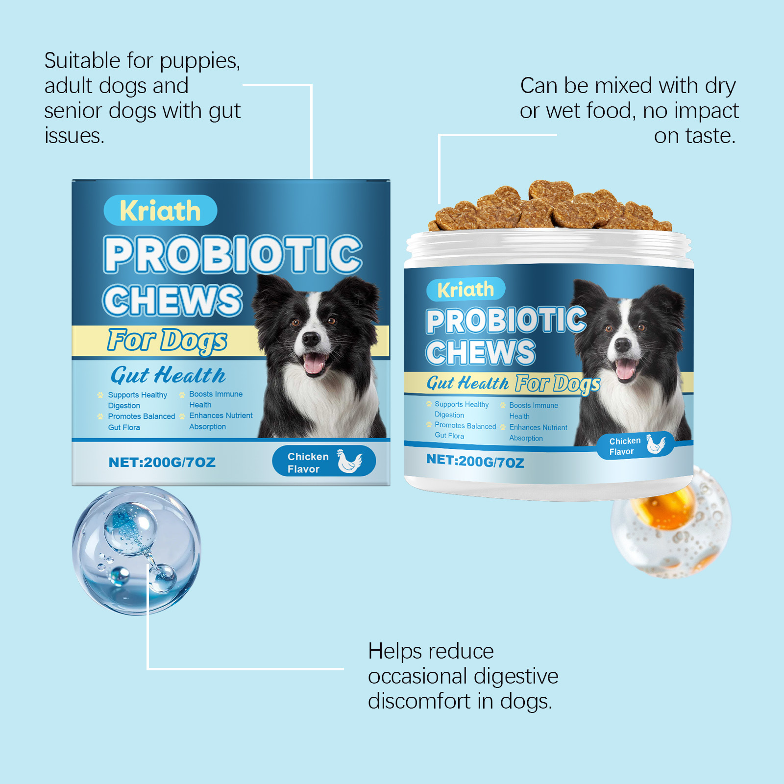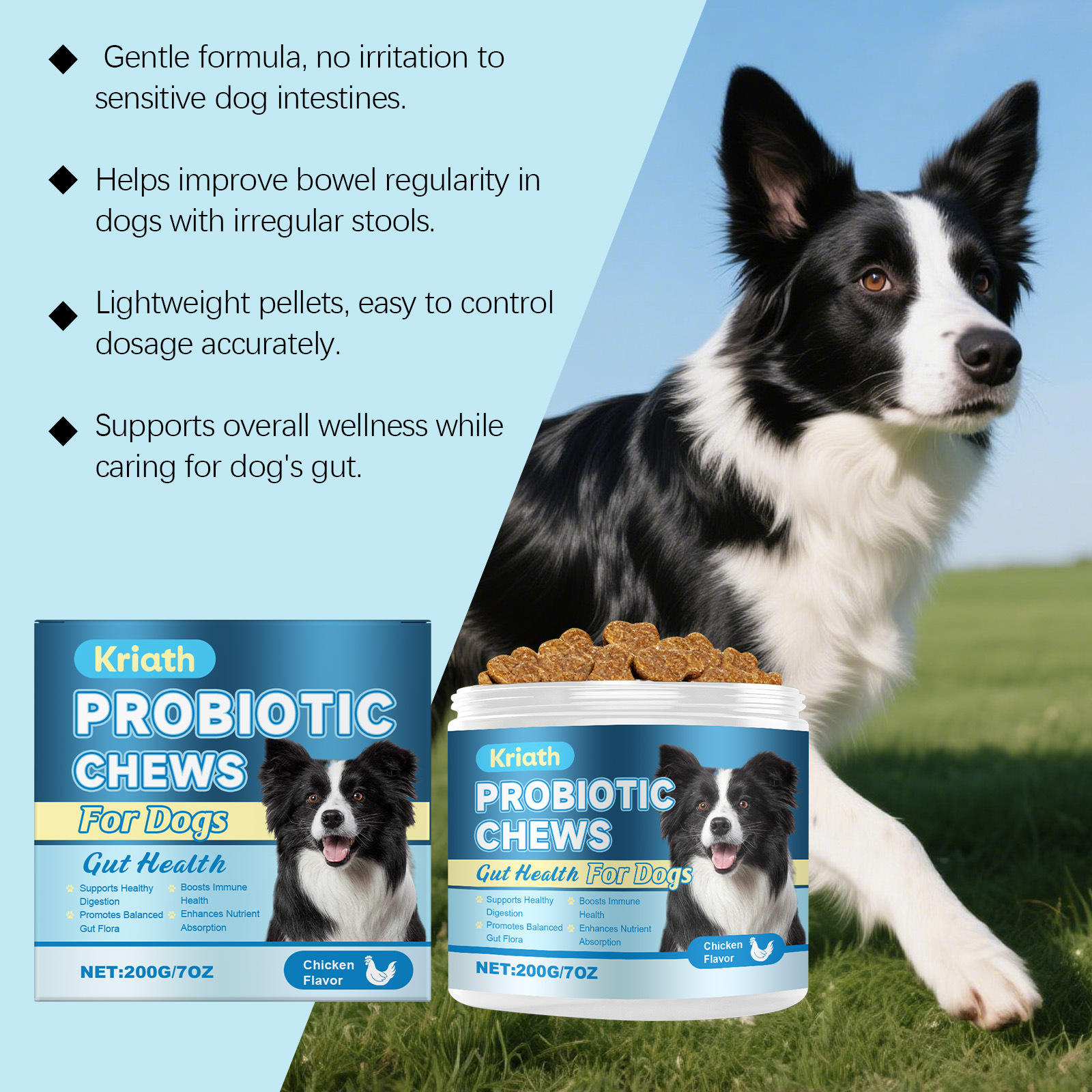 Daily Probiotic Soft Granules for Dogs – Gut & Digestive Support, Easy Sprinkle Formula
